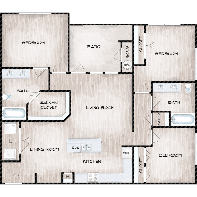 Our spacious and inviting apartments for rent were designed with you in mind. We have five floor plans to choose from, with one, two, and three bedroom options, so there’s something for everyone at Villa Verde Estates. Our standard features include a fully-equipped kitchen, window coverings, walk-in closets, an in-home washer and dryer, and a balcony or patio. Villa Verde Estates combines affordability and quality for a place you will love to call home.